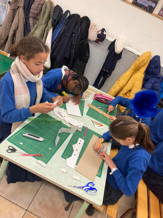 Pendant l’atelier de marqueterie des garçons, les filles s’exercent à la couture.